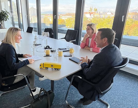 Der österreichische Unternehmenssitz von MEDLOG in der Pottendorferstraße in Wien wurde im Oktober 2025 zur Kulisse eines sympathischen Gesprächs zwischen Christian Vogt, General Manager, Katharina Korbelik, HR-Managerin für MSC und MEDLOG Österreich, und Claudia Raab, Vertriebsmitarbeiterin unseres Teams. In entspannter Atmosphäre sprachen sie über die Bedeutung effizienter Logistiklösungen, die Rolle der Digitalisierung und die vielfältigen Möglichkeiten, die MTrack bietet.